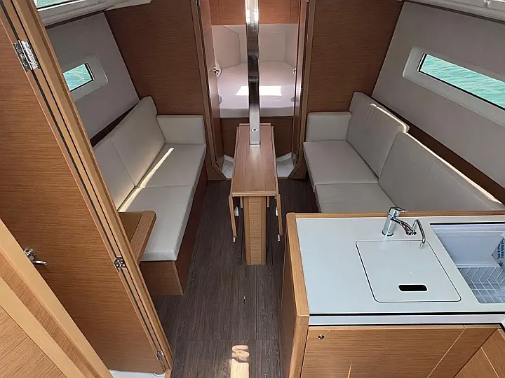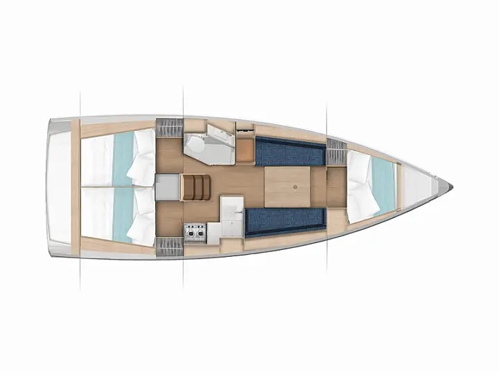 Refrigerator , Electric winches , Cockpit cushions , Bimini , Sprayhood , Dinghy , Swimming platform , Holding tank , Outboard engine , Heating , Cockpit speakers , Inverter