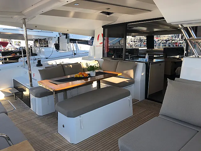 Holding tank , Air condition , Heating , Coffee maker , Dinghy , Generator , Inverter , Bimini , Cockpit speakers , Teak Cockpit , Cockpit cushions , Refrigerator , Barbecue grill in cockpit