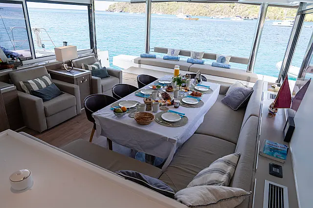 Inverter , Refrigerator , Cockpit cushions , Electric toilet , Water maker , Ice maker , Solar Panels , Cockpit speakers , Air condition , Electric winches , Teak deck , Dinghy