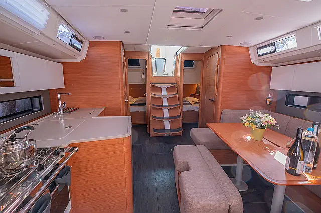 Cockpit cushions , Sprayhood , Bimini , Coffee maker , Wi-Fi & Internet , Holding tank , Dinghy , Outboard engine , Inverter , Heating , Electric toilet , Barbecue grill in cockpit , Cockpit speakers , Solar Panels , Refrigerator