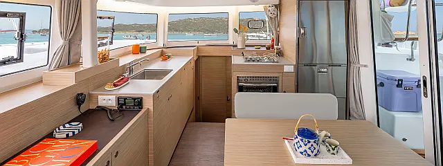 | Exclusive Comfort package (Includes damage waiver, final cleaning, WiFi (75GB/week), dinghy, outboard engine, bed sheets & towels, beach towels, coffee machine+10 capsules, ice maker, cooking gas, tax) +770 EUR refundable | 830.00 € | per booking |