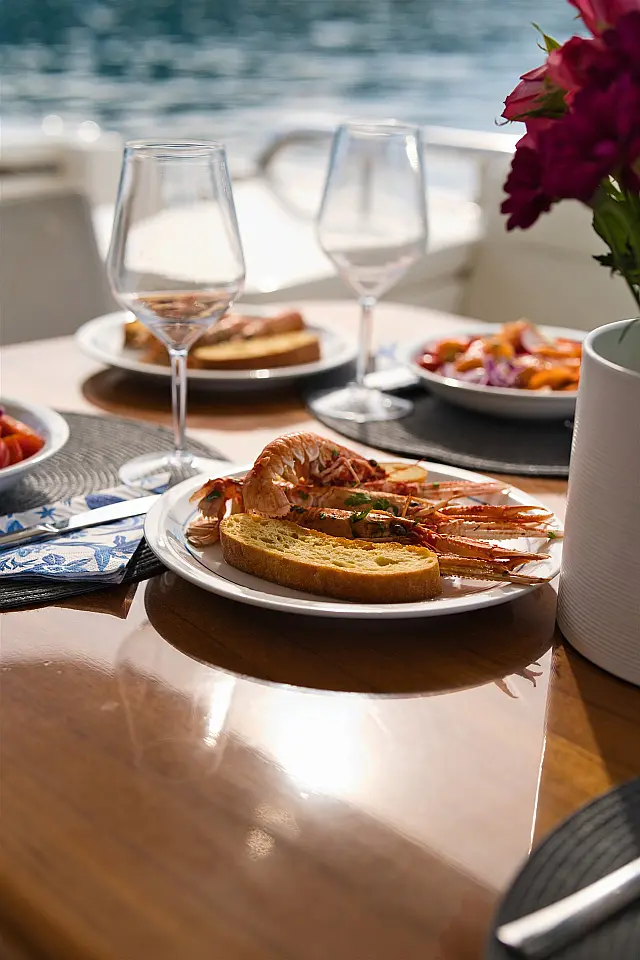 Wi-Fi & Internet , Air condition , Ice maker , Dishwasher , Washer/Dryer , Water maker , Flybridge , Swimming platform , Dinghy