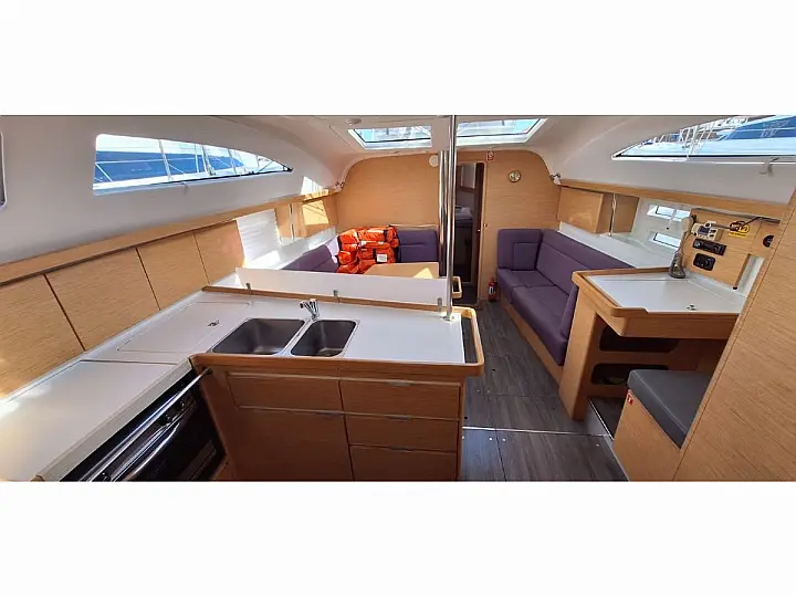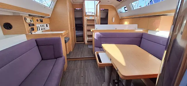 Bimini , Swimming platform , Hydraulic gangway , Sprayhood , Teak Cockpit , Dinghy , Outboard engine , Cockpit cushions , Refrigerator , Cockpit speakers , Wi-Fi & Internet , Coffee maker , Solar Panels , Heating