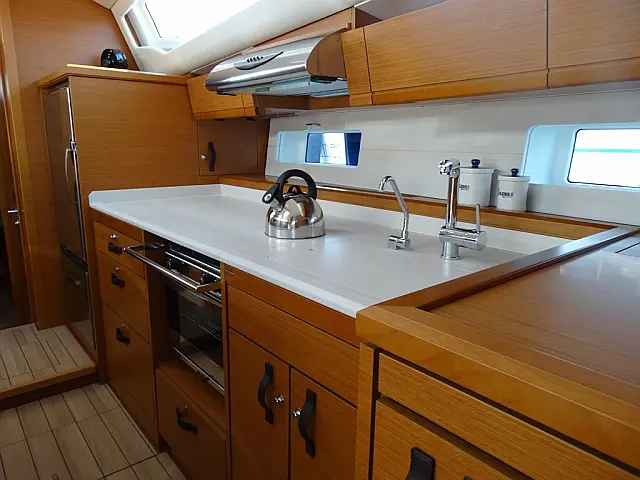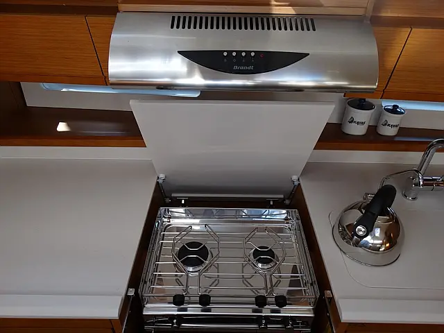 Sprayhood , Bimini , Cockpit speakers , Holding tank , Refrigerator , Swimming platform , Cockpit cushions , Electric toilet , Solar Panels , Air condition , Dinghy