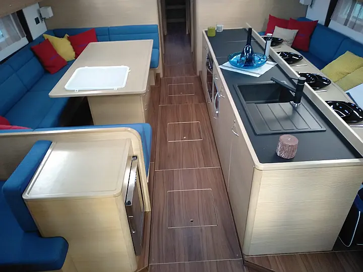 Outboard engine , Dinghy , Refrigerator , Sprayhood , Teak Cockpit , Cockpit speakers , Air condition , Heating , Inverter
