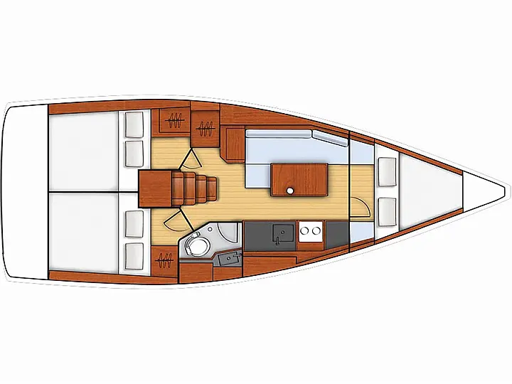 Dinghy , Outboard engine , Teak Cockpit , Refrigerator , Cockpit cushions , Sprayhood , Heating , Holding tank , Electric toilet , Wi-Fi & Internet