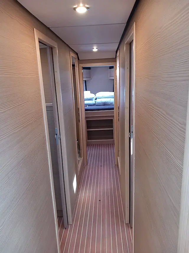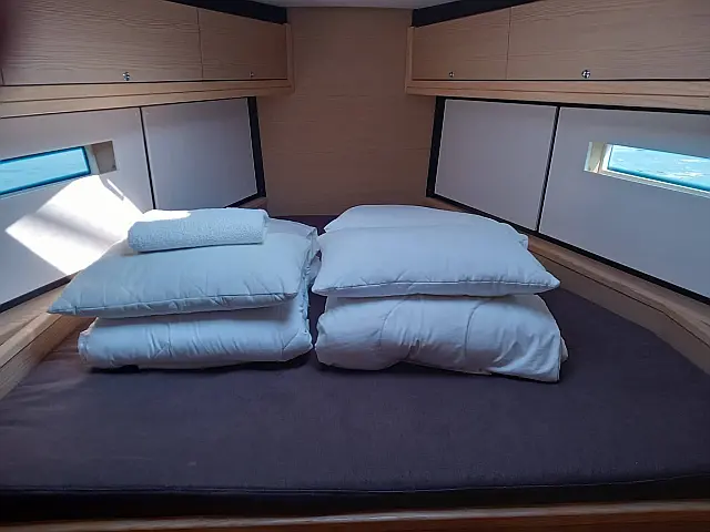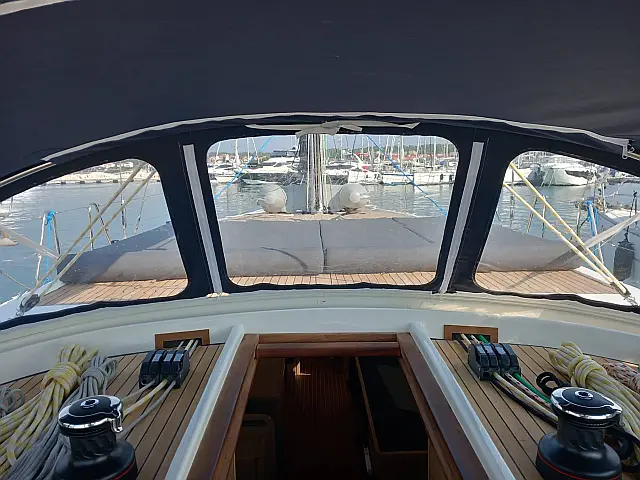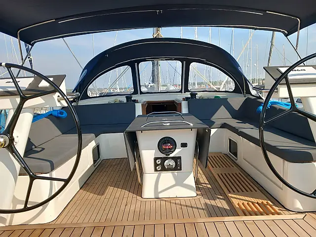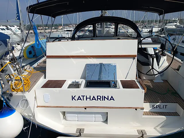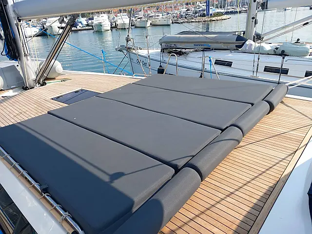 Teak deck , Cockpit speakers , Teak Cockpit , Air condition , Refrigerator , Generator , Cockpit cushions , Barbecue grill in cockpit , Outboard engine , Dinghy