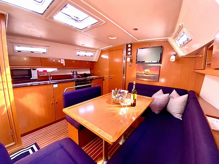 Inverter , Cockpit speakers , Cockpit cushions , Solar Panels , Bimini , Sprayhood , Teak Cockpit , Refrigerator , Dinghy , Heating