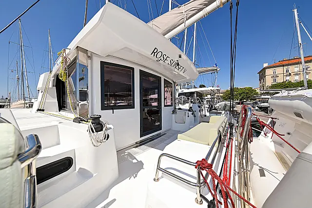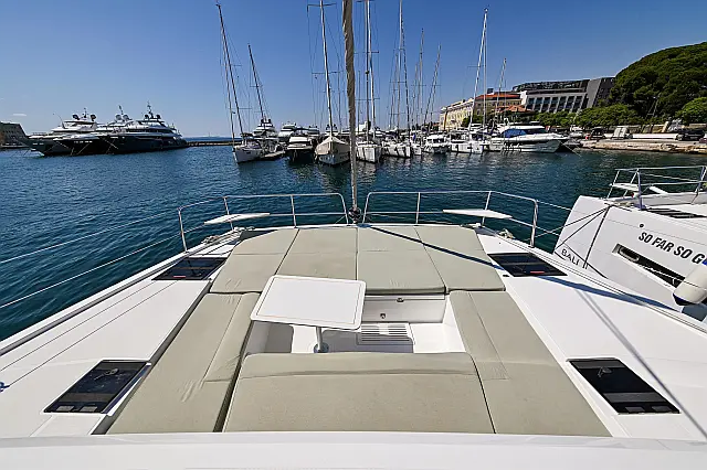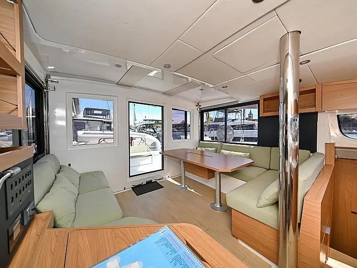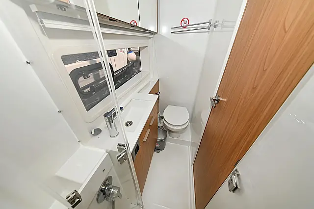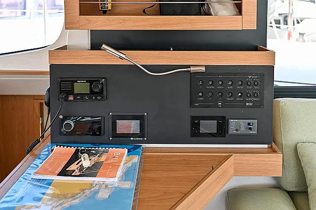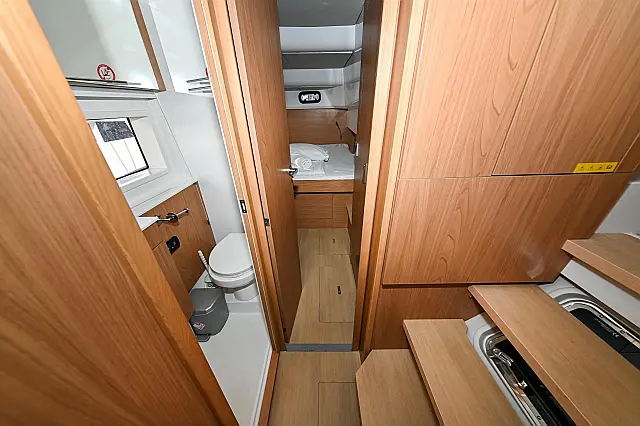 Holding tank , Cockpit cushions , Solar Panels , Electric toilet , Swimming platform , Dinghy , Refrigerator