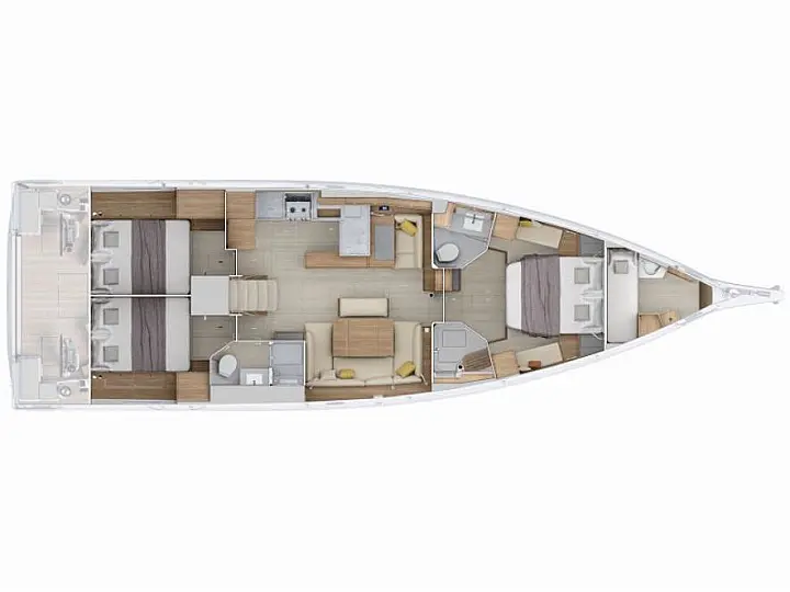 Generator , Holding tank , Washer/Dryer , Dinghy , Electric toilet , Electric winches , Sprayhood , Bimini , Cockpit speakers , Teak Cockpit , Cockpit cushions , Refrigerator , Barbecue grill in cockpit