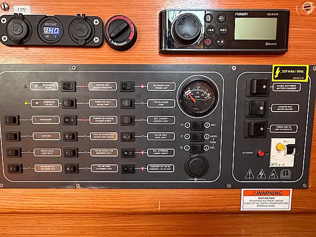 Air condition , Bimini , Cockpit speakers , Refrigerator , Heating , Solar Panels , Sprayhood